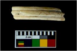 | Description / विवरण | A broken fragment of a decorated shell bangle. It is creamish in colour with rectangular cross section. |