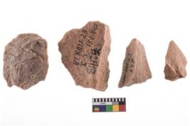 | Description / विवरण | A specimen of flake tool with prominent flaking marks. It made up of a short flakes with sides trimmed. It is rectangular in shaped |