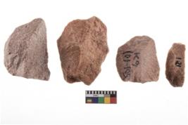 | Description / विवरण | A specimen of flake tool with prominent flaking marks. It made up of a short flakes with sides trimmed. It is rectangular in shaped |