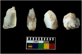 | Description / विवरण | Four worked utilised cores. Flakes removed from few sides. Most of them are uneven and few are tapering at one end. |