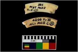 | Description / विवरण | There are n-2 fragments of undecorated shell bangles. They are creamish in colour with rectangular cross section. |