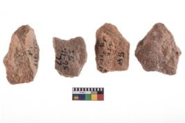 | Description / विवरण | A specimen of flake tool with prominent flaking marks. It made up of a short flakes with sides trimmed. It is rectangular in shaped |