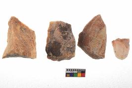 | Description / विवरण | There are n-4 of utilized flake cores. There are multidirectional irregular dominant scar pattern on both dorsal and ventral face of the cores. Some of them bulge of percussion and some are flat flake cores. |