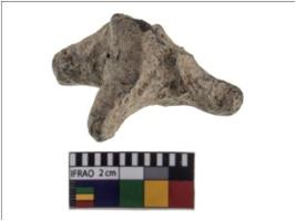 | Description / विवरण | A partially broken specimen of a terracotta hand made unidentified figurine. With a partially broken left leg and other three are intact. It is ill fired. |