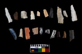 | Description / विवरण | There are n-20 of microliths, among them 5 are quartz, and 15 are of chert. Some of them are partially broken. They show variation in colour, size and shape. Some of them are blunted back blades, points, triangles, trapezes, crescent and truncated blades. |