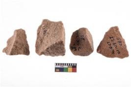 | Description / विवरण | A specimen of flake tool with prominent flaking marks. It made up of a short flakes with sides trimmed. It is rectangular in shaped |