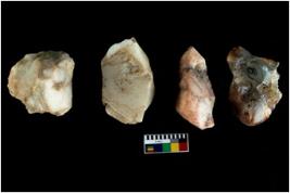 | Description / विवरण | Four worked utilised cores. Flakes removed from few sides. Most of them are uneven and few are tapering at one end. |