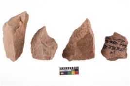 | Description / विवरण | A specimen of flake tool with prominent flaking marks. It made up of a short flakes with sides trimmed. It is rectangular in shaped |