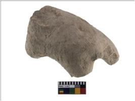 | Description / विवरण | A partially broken specimen of a terracotta handmade bull figurine with missing head, broken hump and damaged frontal side two legs and back side left leg. It is made of fine clay. It has elongated body |