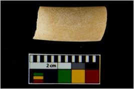 | Description / विवरण | A broken fragment of an undecorated shell bangle. It is creamish in colour with rectangular cross section. |