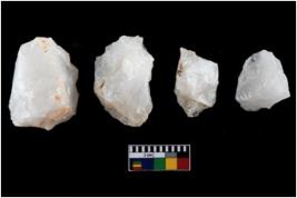 | Description / विवरण | A specimen of a fluted core having very few fluted marks before removing of blades form it. It is roughly rounded in shape and white in colour. |