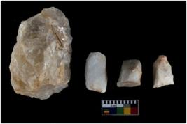 | Description / विवरण | There are 4 core. Two made from Quartz and two from chert. The smaller chert core has shrp edges and shows marks of ridge lines. |