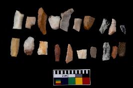 | Description / विवरण | There are n-20 of microliths, among them 4 are quartz, and 16 are of chert. Some of them are partially broken. They show variation in colour, size and shape. Some of them are blunted back blades, points, triangles, trapezes, crescent and truncated blades. |