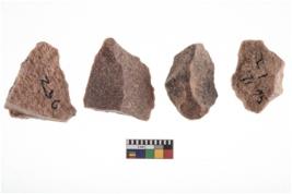 | Description / विवरण | A specimen of flake tool with prominent flaking marks. It made up of a short flakes with sides trimmed. It is rectangular in shaped |