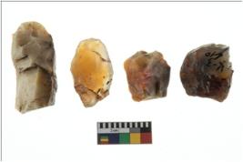 | Description / विवरण | Four worked utilised cores. Flakes removed from few sides. Most of them are uneven and few are tapering at one end. |
