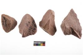 | Description / विवरण | A specimen of flake tool with prominent flaking marks. It made up of a short flakes with sides trimmed. It is rectangular in shaped |