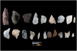 | Description / विवरण | There are 14Quartz, 5 Chert and one chalcedony flakes.It comprises of one chert flake with a very pointed pen point. The chalce flake is also properly given shape with sharp edge. |
