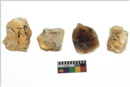 | Description / विवरण | Four worked utilised cores. Flakes removed from few sides. Most of them are uneven and few are tapering at one end. |