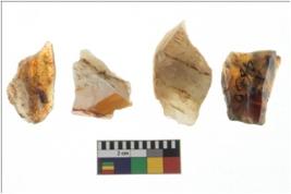 | Description / विवरण | Four worked utilised cores. Flakes removed from few sides. Most of them are uneven and few are tapering at one end. |