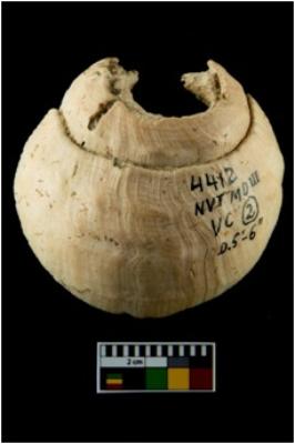 | Description / विवरण | A broken fragment of a shell. It is creamish in colour with rectangular cross section. |