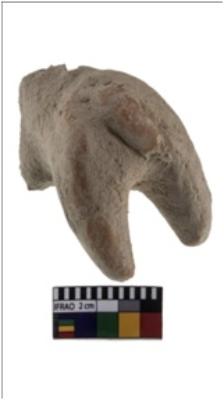 | Description / विवरण | A partially broken specimen of a terracotta handmade bull figurine with missing head, broken hump and damaged frontal side, Raised rump with long tail back legs are pointed at the bottom It is made of fine clay well fired |