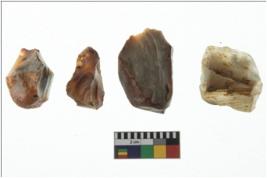 | Description / विवरण | Four worked utilised cores. Flakes removed from few sides. Most of them are uneven and few are tapering at one end. |