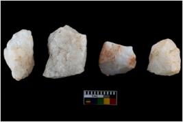 | Description / विवरण | Specimen of a fluted cores having several broad fluted marks indicating the detached blades from it. |