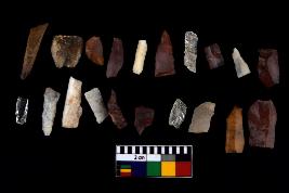 | Description / विवरण | There are n-20 of microliths, among them 5 are quartz, and 15 are of chert. Some of them are partially broken. They show variation in colour, size and shape. Some of them are blunted back blades, points, triangles, trapezes, crescent and truncated blades. |