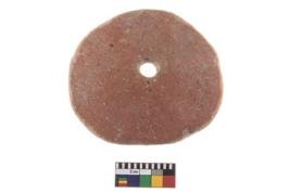 | Description / विवरण | A perforated disc of Red Ware. |