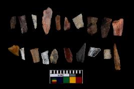| Description / विवरण | There are n-20 of microliths, among them 4 are quartz, and 16 are of chert. Some of them are partially broken. They show variation in colour, size and shape. Some of them are blunted back blades, points, triangles, trapezes, crescent and truncated blades. |