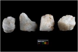 | Description / विवरण | Specimen of a fluted cores having several broad fluted marks indicating the detached blades from it. |