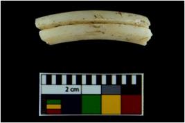 | Description / विवरण | A broken fragment of a decorated shell bangle. It is creamish in colour with rectangular cross section. |