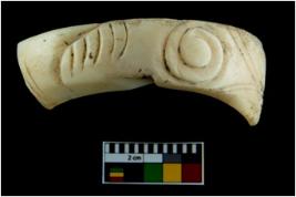 | Description / विवरण | A broken fragment of a decorated shell bangle. It is creamish in colour with rectangular cross section. |