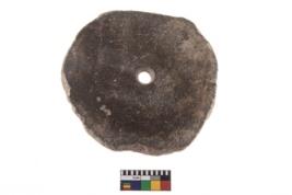 | Description / विवरण | A perforated disc of Grey Ware. |