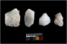 | Description / विवरण | Specimen of a fluted cores having several broad fluted marks indicating the detached blades from it. |