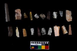 | Description / विवरण | There are n-20 of microliths, among them 6 are quartz, and 14 are of chert. Some of them are partially broken. They show variation in colour, size and shape. Some of them are blunted back blades, points, triangles, trapezes, crescent and truncated blades. |