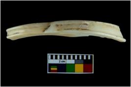 | Description / विवरण | A broken fragment of a decorated shell bangle. It is creamish in colour with rectangular cross section. |