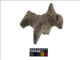 | Description / विवरण | A partially broken specimen of a terracotta handmade bull figurine. With horns and three legs are missing , only right side leg is visible. It s leg , face and hump is pinched. It has a short tail on raised rump. It is made of fine clay ill fired. |