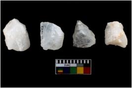| Description / विवरण | Specimen of a fluted cores having several broad fluted marks indicating the detached blades from it. |