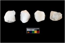 | Description / विवरण | A specimen of a fluted core having very few fluted marks before removing of blades form it. It is roughly rounded in shape and white in colour. |