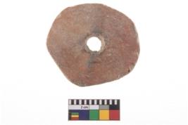 | Description / विवरण | A perforated disc of Red Ware. |