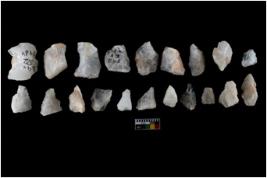 | Description / विवरण | There are n-20 of intact flake cores made up of Quartz. Some of them have bulge of percussion and some are flat flakes. |