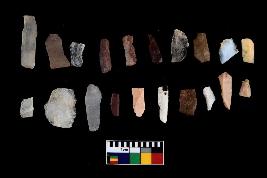 | Description / विवरण | There are n-20 of microliths, among them 4 are quartz, and 16 are of chert. Some of them are partially broken. They show variation in colour, size and shape. Some of them are blunted back blades, points, triangles, trapezes, crescent and truncated blades. |