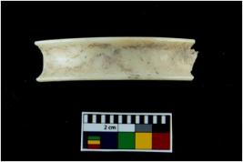 | Description / विवरण | A broken fragment of a decorated shell bangle. It is creamish in colour with rectangular cross section. |