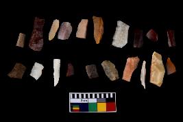 | Description / विवरण | There are n-20 of microliths, among them 2 are quartz, and 18 are of chert. Some of them are partially broken. They show variation in colour, size and shape. Some of them are blunted back blades, points, triangles, trapezes, crescent and truncated blades. |