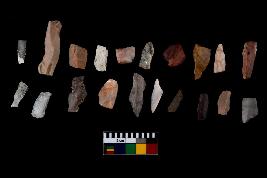 | Description / विवरण | There are n-20 of microliths, among them 4 are quartz, and 16 are of chert. Some of them are partially broken. They show variation in colour, size and shape. Some of them are blunted back blades, points, triangles, trapezes, crescent and truncated blades. |