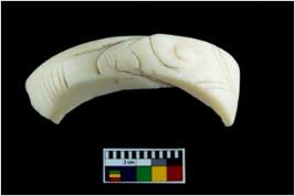 | Description / विवरण | A broken fragment of a decorated shell bangle. It is creamish in colour with rectangular cross section. |