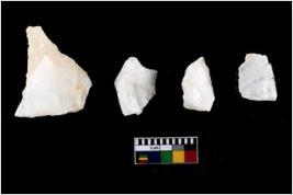 | Description / विवरण | A specimen of a fluted core having very few fluted marks before removing of blades form it. It is roughly rounded in shape and white in colour. |