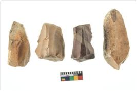 | Description / विवरण | Four worked utilised cores. Most of them are with sharp edges. Most of them are tapering at one end. |