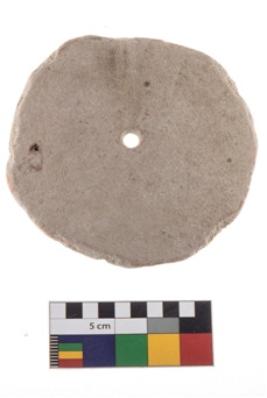 | Description / विवरण | A perforated disc of Red Ware. |